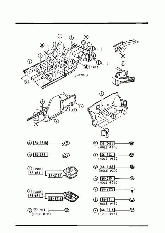 - Parts > Mazda 626 > 1989-08 > Body Exterior Trim > Floor Attachments(hole Covers)