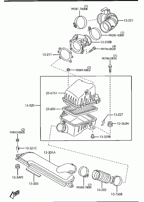 - Parts > Mazda 626 > 1997-04 > Gasoline-engine 4-cylinder Supplement > Air Cleaner(gasoline & Lpg)