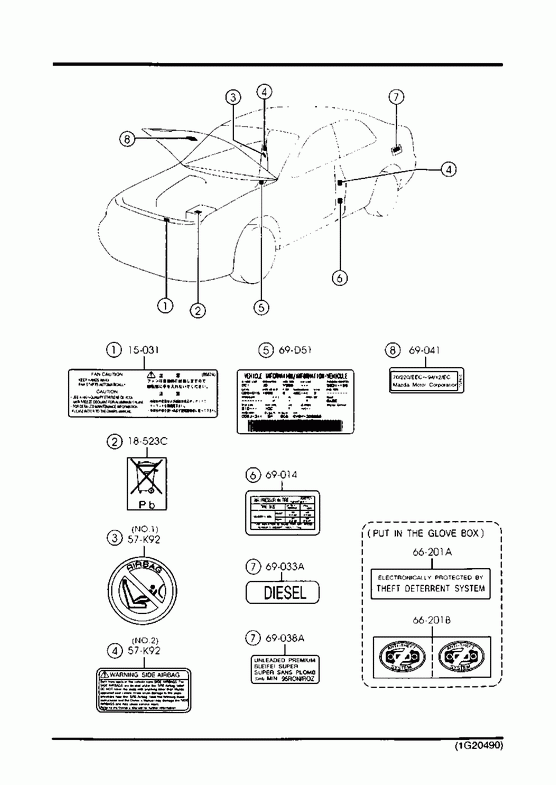 - Parts > Mazda 626 > 1997-04 > Body Interior Trim > Caution Plates & Labels