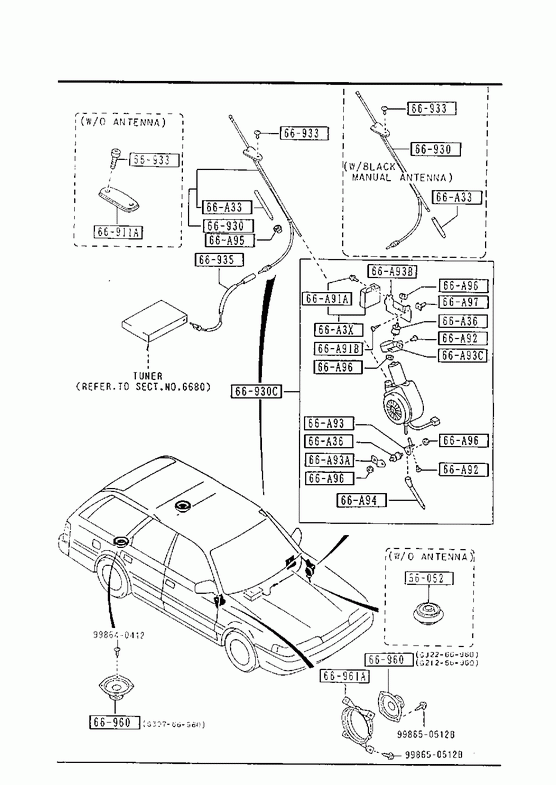 AM/FM/LW,W/DECK,4-SPK.€ 68,30 GJ2266960 2 AM/FM/LW,W/DECK,4-SPK. € 68,30 » 66961A PANEL,SPEAKER Part Number Qty. Specifications Price GJ2266961 2 € 6,71 » 66A33 TUBE,RUBBER-ANTENNA Part Number Qty. Specifications Price GJ2266936 1 W/BLACK MANUAL ANTENNA € 2,91 GJ2366A33 1 W/BRIGHT MOTOR ANTENNA € 2,26 » 66A36 INSULATOR,ANTENNA Part Number Qty. Specifications Price GJ2566A36 2 W/BRIGHT MOTOR ANTENNA » 66A3X RELAY,MOTOR-ANTENNA Part Number Qty. Specifications Price GJ2666A3X 1 W/BRIGHT MOTOR ANTENNA » 66A91A BOLT Part Number Qty. Specifications Price GJ2466A91 1 W/BRIGHT MOTOR ANTENNA » 66A91B SCREW,ANTENNA Part Number Qty. Specifications Price GJ2566A91 2 W/BRIGHT MOTOR ANTENNA » 66A92 SCREW,ANTENNA Part Number Qty. Specifications Price GJ2566A92 2 W/BRIGHT MOTOR ANTENNA € 0,48 » 66A93 BRACKET LOW 1,ANTENNA Part Number Qty. Specifications Price GJ2266A93 1 W/BRIGHT MOTOR ANTENNA » 66A93A BRACKET LOW 2,ANTENNA Part Number Qty. Specifications Price GJ2366A93 1 W/BRIGHT MOTOR ANTENNA » 66A93B BRACKET UP,ANTENNA Part Number Qty. Specifications Price GJ2466A93 1 W/BRIGHT MOTOR ANTENNA » 66A93C BRACKET,ANTENNA Part Number Qty. Specifications Price GJ2566A93 1 W/BRIGHT MOTOR ANTENNA » 66A94 PIPE,DRAIN-ANTENNA Part Number Qty. Specifications Price GJ2566A9Y 1 W/BRIGHT MOTOR ANTENNA » 66A95 GROMMET,DRAIN PIPE-ANTENN Part Number Qty. Specifications Price GJ2266937 1 W/BLACK MANUAL ANTENNA