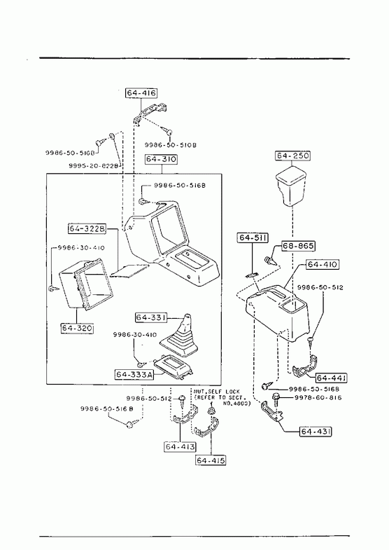 » 64250 TRAY,ASH Part Number Qty. Specifications Price B00164660 1 » 64310 CONSOLE,FRONT Part Number Qty. Specifications Price D00264310B 1 » 64320 CONSOLE Part Number Qty. Specifications Price D00264321A 1 » 64322B PLATE,CONSOLE BOX Part Number Qty. Specifications Price D00264322A 1 » 64331 BOOT,CHANGE Part Number Qty. Specifications Price D00264331 1 » 64333A PANEL,BOOTS-CONSOLE Part Number Qty. Specifications Price D00264332 1 » 64410 CONSOLE,REAR Part Number Qty. Specifications Price B00164411 1 » 64413 BRACKET,CONSOLE-NO.1 Part Number Qty. Specifications Price D00264351 1 » 64415 BRACKET,CONSOLE-NO.2 Part Number Qty. Specifications Price D00264361 1 » 64416 BRACKET,CONSOLE-NO.3 Part Number Qty. Specifications Price DA1464371 1 A (DA14-64-371A)