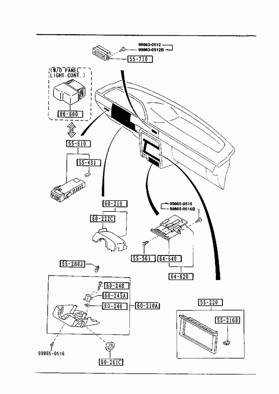 BG****552318-€ 4,31 » 55561 BOLT,INST. PANEL Part Number Qty. Specifications Price B45555561 1 € 0,88 » 55610 RESISTOR,PANEL LIGHT Part Number Qty. Specifications Price EA0155490 1 W/PANEL LIGHT CONT. € 76,45 » 55710 CLOCK,AUTO Part Number Qty. Specifications Price B45555710A 1 - 941001