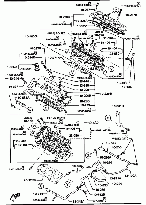 - Parts > Mazda 323F > 1994-04 > Gasoline-engine V6-cylinder Transmission > Cylinder Head & Cover(2000cc)
