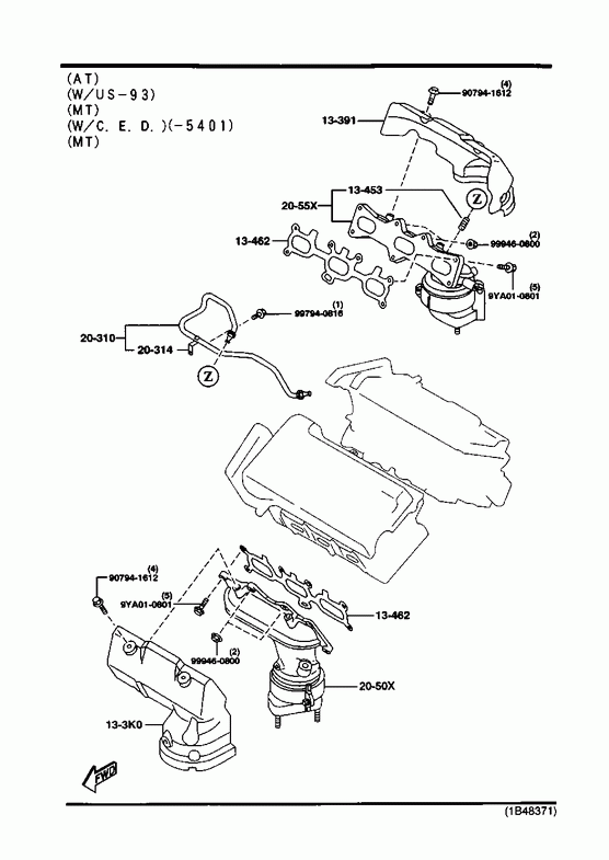 - Parts > Mazda 323F > 1994-04 > Gasoline-engine V6-cylinder Supplement > Exhaust Manifold(2000cc)
