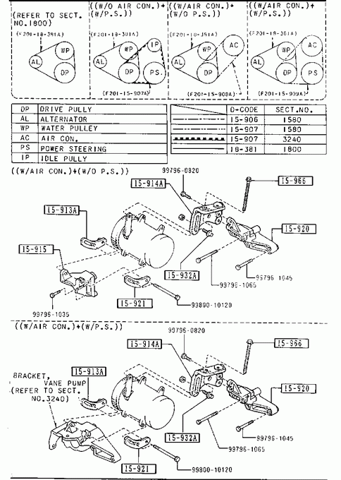 (W/AIR CON>W/O P.S.)€ 22,00 » 15907 BELT'V' Part Number Qty. Specifications Price F20115909A 1 RIB-ACE 5PK1060