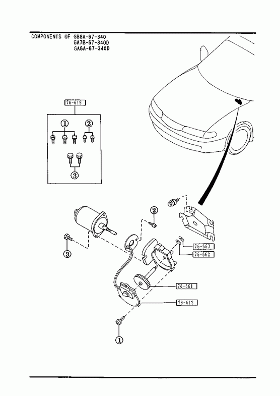 » 76612 PLATE,HOLDER-BRUSH Part Number Qty. Specifications Price GA6A67351 1 JAPAN MAKE € 53,54 GB8A67351 1 USA MAKE » 76619 PARTS SET Part Number Qty. Specifications Price H04376619A 1 € 8,30 » 76661 GEAR,SHAFT Part Number Qty. Specifications Price GA2K67354 1 (4-DOOR>USA MAKE) GA6A67354 1 2-DOOR € 25,20 GA7B67354 1 (4-DOOR>JAPAN MAKE)