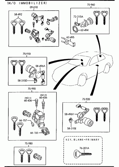 - Parts > Mazda 626 > 1997-04 > Body Electronics > Key Sets(5-door)