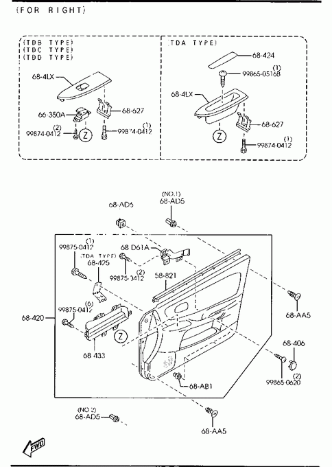 - Parts > Mazda 626 > 1997-04 > Body Interior Trim > Front Door Trims & Related Parts