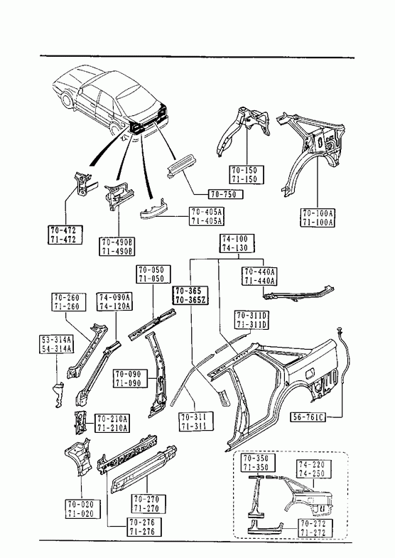 GD10E2200374-€ 134,75 » 70210A PILLAR(R),HINGE Part Number Qty. Specifications Price GJ2170230 1 € 62,73 » 70260 PILLAR(R),FRT.-INNER Part Number Qty. Specifications Price G22570240 1 € 67,04 » 70270 PANEL(R),SIDE SILL Part Number Qty. Specifications Price G2117027X 1 € 87,66 » 70272 SILL(R),REAR SIDE OU Part Number Qty. Specifications Price G2Y570270A 1 » 70276 REINF.(R),SIDE SILL Part Number Qty. Specifications Price G21170280 1 G (G211-70-281A)