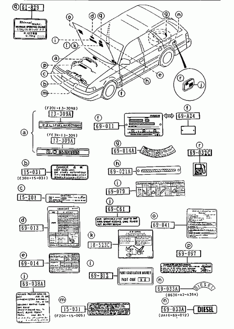 - Parts > Mazda 626WAGON > 1989-10 > Body Interior Trim > Caution Plates & Labels
