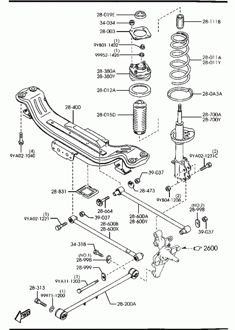 - Parts > Mazda 626WAGON > 1997-10 > Chassis Axle Suspension,brake & Steering > Rear Suspension Mechanisms
