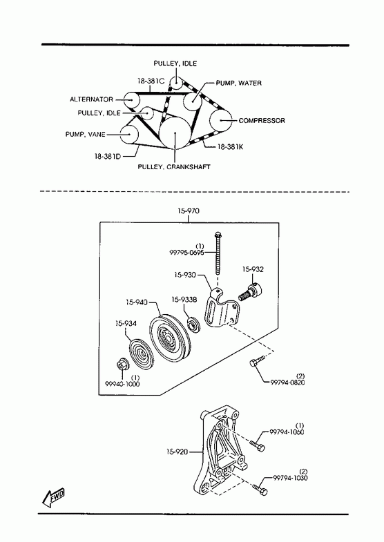 - Parts > Mazda B2200 > 1999-02 > Gasoline-engine 4-cylinder Supplement > Bracket,pulley & Belt(gasoline)(2600cc)