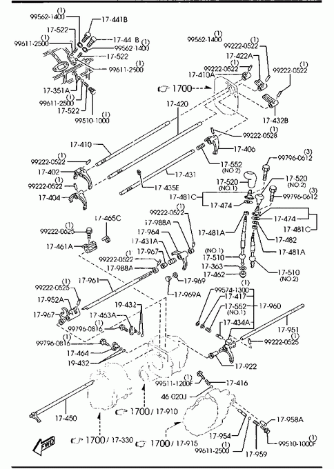 UN***2318037-€ 26,85 » 17461A END,CONTROL LEVER Part Number Qty. Specifications Price M50617461A 1 € 27,63 » 17462 SHEET,SPRING Part Number Qty. Specifications Price 039817462A 1 € 4,21 » 17463A PIN,STOPPER-RR. Part Number Qty. Specifications Price M50317463C 1 € 20,00 » 17464 PIN,STOPPER-FRT Part Number Qty. Specifications Price M50317464C 1 € 10,56 » 17465C SPRING,SELECT Part Number Qty. Specifications Price M50317465A 1 € 2,45 » 17474 GASKET,COVER PLATE Part Number Qty. Specifications Price 030317474 2 € 2,04 » 17481A BUSH,CHANGE Part Number Qty. Specifications Price M50117481 2 € 3,17 » 17481C BOOT,DUST Part Number Qty. Specifications Price M5AA1747Z 2 € 3,13 » 17482 WASHER,WAVE-CHANGE CONT.CASE Part Number Qty. Specifications Price M50217482 1 € 2,90 » 17510 LEVER,CHANGE Part Number Qty. Specifications Price M5AB17510 1 ILLUST. NO.1 € 120,22 M5AC17510 1 ILLUST. NO.2 € 90,03 » 17520 KNOB,CHANGE LEVER Part Number Qty. Specifications Price M5AA17520 1 ILLUST. NO.1 € 8,99 M5AC17520 1 ILLUST. NO.2 » 17522 SPRING Part Number Qty. Specifications Price 010317411 3 € 1,13 » 17552 SPRING Part Number Qty. Specifications Price M50117552 1 ILLUST. NO.1 € 2,38 R50117552 1 ILLUST. NO.2 € 2,57 » 17922 SPACER,2W & 4W Part Number Qty. Specifications Price M50217922A 1 € 4,57 » 17951 ROD,SHIFT-HI & LOW Part Number Qty. Specifications Price M50317951A 1 € 23,30 » 17952A END,SHIFT-2W & 4W Part Number Qty. Specifications Price M50217952B 1 » 17954 PIN,INTERLOCK-SHIFT ROD Part Number Qty. Specifications Price M50217954 1 € 3,21 » 17958A PIN Part Number Qty. Specifications Price M50217958B 1 € 3,29 » 17959 SPRING,SHIFT ROD-LOW & HI Part Number Qty. Specifications Price M50117959A 1 € 1,84 » 17960 FORK,SHIFT Part Number Qty. Specifications Price M50117960A 1 € 43,36 » 17961 ROD,SHIFT 2W & 4W Part Number Qty. Specifications Price M50317961 1 € 22,84 » 17964 FORK,2W & 4W Part Number Qty. Specifications Price M50217964 1 € 21,93 » 17967 SPACER Part Number Qty. Specifications Price M50217967 2 € 3,97 » 17969 BUSH Part Number Qty. Specifications Price M50117969 1 € 2,38 » 17969A BUSH Part Number Qty. Specifications Price M50217969 1 € 2,33 » 17988A SPACER Part Number Qty. Specifications Price M50217988 2 A (M502-17-988A)