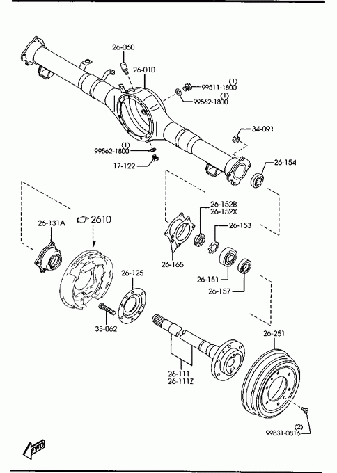- Parts > Mazda E2000 > 1999-08 > Chassis Axle Suspension,brake & Steering > Rear Axle(van)(w/o Antilock Brake)