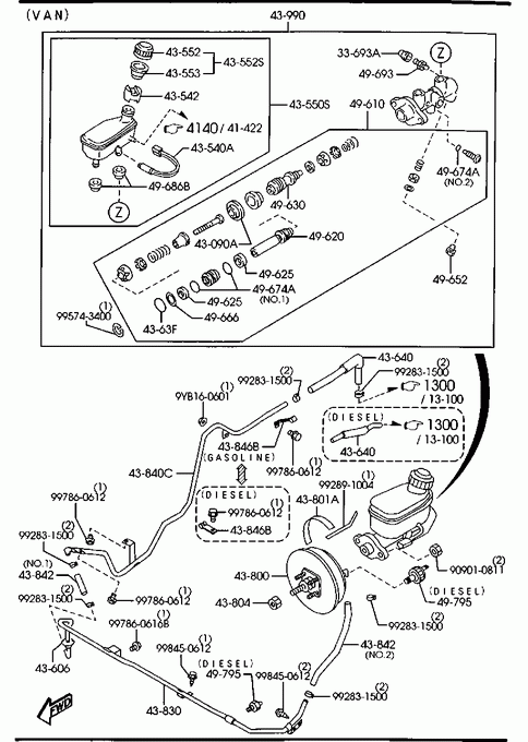 - Parts > Mazda E2000 > 1997-03 > Chassis Piping & Fuel Tank > Brake Master Cylinder & Power Brake