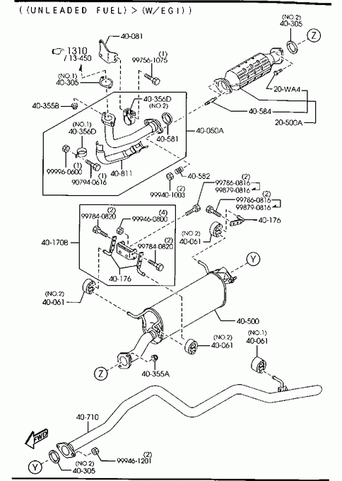 » 20500A CONVERTER,CATALYST Part Number Qty. Specifications Price FE2C20600 1 (UNLEADED FUEL>W/EGI) FF1320600 1 (UNLEADED FUEL>W/O EGI) » 20WA4 BOLT Part Number Qty. Specifications Price FSN520WA5 2 UNLEADED FUEL € 4,87 » 40050A PIPE,EXHAUST-FRONT Part Number Qty. Specifications Price F8E140500A 1 W/EGI € 214,92 FEW740500 1 W/O EGI » 40061 RUBBER,HANGER Part Number Qty. Specifications Price BP4740061A 1 ILLUST. NO.1 € 12,77 KL1640061 3 ILLUST. NO.2 € 10,93 » 40081 BRACKET,HANGER Part Number Qty. Specifications Price FEW240080A 1 W/EGI € 32,50 FEW740080 1 W/O EGI » 40170B BRACKET,MAIN SILENCER Part Number Qty. Specifications Price F8E540170A 1 € 50,81 » 40176 BRACKET,HANGER Part Number Qty. Specifications Price F8E240176A 3 € 8,90 » 40305 GASKET Part Number Qty. Specifications Price G60440305 1 NON ASBESTOS