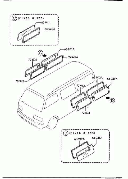 - Parts > Mazda E2000 > 1999-08 > Body Exterior Trim > Side Window Glasses