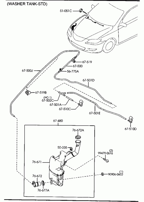WASHER TANK-LARGE€ 5,10 » 67510C NOZZLE(R),WASHER Part Number Qty. Specifications Price BN8W67510 1 € 13,25 » 67510D NOZZLE(L),WASHER Part Number Qty. Specifications Price BN8V67510 1 € 13,24 » 67519 CLIP,PIPE Part Number Qty. Specifications Price BP4L67519 1 € 2,30 » 67519B CLIP Part Number Qty. Specifications Price BP4K67519A 2 € 2,34 » 76671 TANK,WASHER Part Number Qty. Specifications Price BN9A67481B 1 WASHER TANK-LARGE € 52,64 BN9B67481B 1 WASHER TANK-STD € 52,64 » 76672 PUMP,WASHER Part Number Qty. Specifications Price G22C67482 1 € 23,43 » 76672A CAP,TANK Part Number Qty. Specifications Price BP4K67483A 1 € 7,10 » 76677A GROMMET,WASHER TANK Part Number Qty. Specifications Price G22C67491 1 € 2,75 » 90720 SCREW Part Number Qty. Specifications Price 994790616 1 » 90906 NUT,FLANGE Part Number Qty. Specifications Price 909060602 1 € 0,48