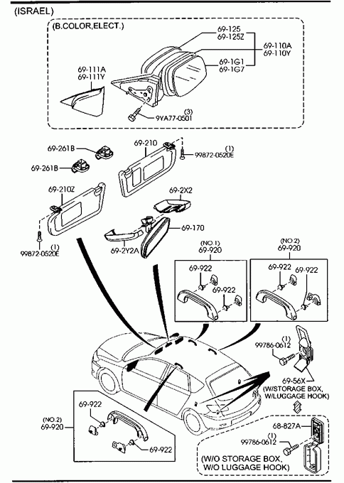 BK1***500511-€ 7,31 » 6956X HOOK,CARGO NET Part Number Qty. Specifications Price LD476956X 4 W/STORAGE BOX,W/LUGGAGE HOOK » 69920 HANDLE,ASSIST Part Number Qty. Specifications Price D35069470 1 ILLUST. NO.1