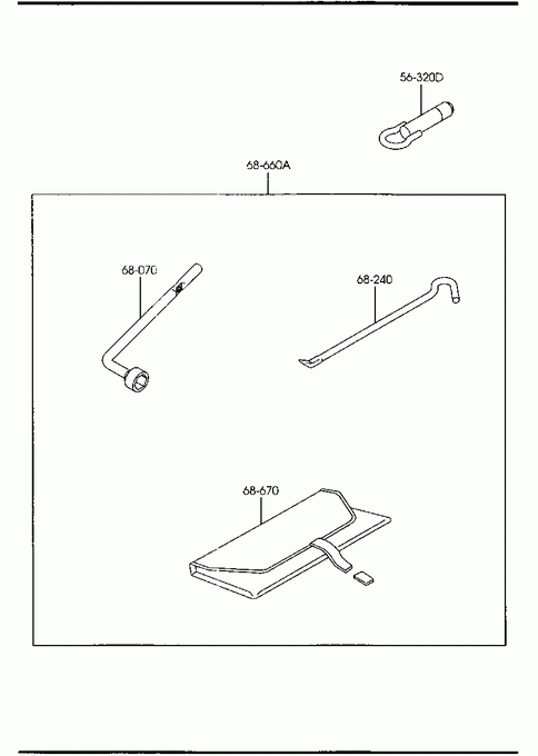 GG1*** -658079» 68070 WRENCH,HUB NUT Part Number Qty. Specifications Price LD4769671 1 € 14,07 » 68240 LEVER,JACK Part Number Qty. Specifications Price LD4737770 1 € 7,82 » 68660A TOOL SET Part Number Qty. Specifications Price D53269650 1 € 33,86 » 68670 BAG,TOOL Part Number Qty. Specifications Price D53269670 1