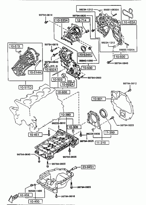 - Parts > Mazda MPV > 1995-12 > Diesel-engine & Transmission > Oil Pan & Timing Cover(diesel)