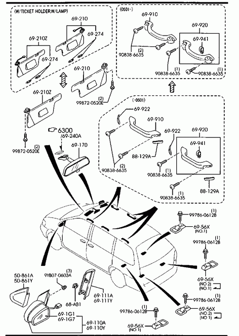 - Parts > Mazda MPV > 1999-06 > Body Interior Trim > Sun Visors, Assist Handle & Mirrors