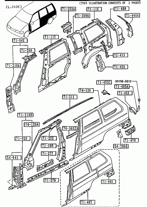 LV10E3100695-€ 131,69 » 74120A PILLAR(L),FRONT-OUT. Part Number Qty. Specifications Price LA0171220B 1 A (LA01-71-220C) » 74130 PANEL(L),FENDER-REAR Part Number Qty. Specifications Price LAY171400A 1 A (LAY1-71-400B)