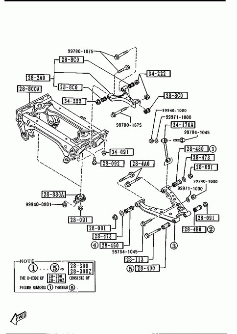 - Parts > Mazda MX-5 > 1993-09 > Chassis Axle Suspension & Steering > Rear Lower Arms & Sub Frame