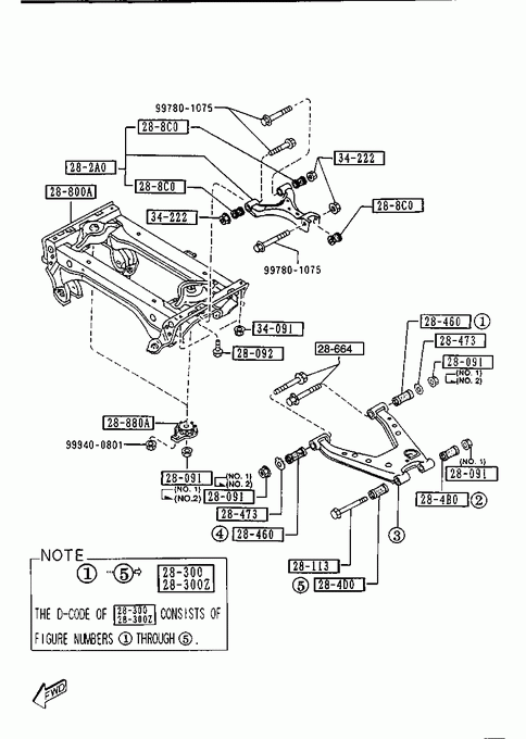 - Parts > Mazda MX-5 > 1994-12 > Chassis Axle Suspension,brake & Steering > Rear Lower Arms & Sub Frame