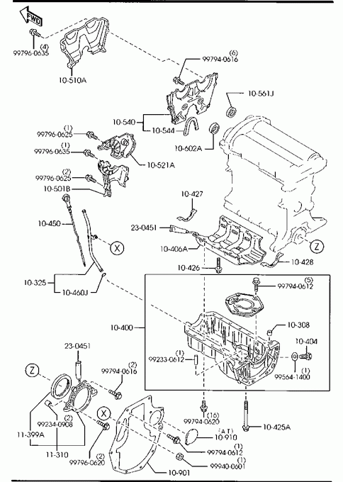 - Parts > Mazda MX-5 > 2000-08 > Gasoline-engine 4-cylinder Transmission > Oil Pan & Timing Cover(1800cc)