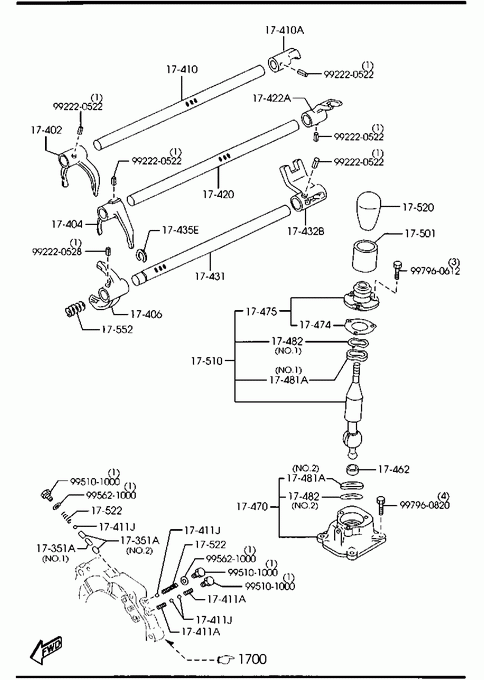 » 17351A PIN,INTER LOCK Part Number Qty. Specifications Price 011417351 2 ILLUST. NO.2 € 2,12 R50117351 1 ILLUST. NO.1 € 3,06 » 17402 FORK,SHIFT (1ST & 2ND) Part Number Qty. Specifications Price M50317402 1 € 26,59 » 17404 FORK,SHIFT (3RD & 4TH) Part Number Qty. Specifications Price M50117404D 1 € 30,29 » 17406 FORK,SHIFT-5TH & REVERSE Part Number Qty. Specifications Price M50417406A 1 € 29,69 » 17410 ROD,SHIFT(1ST&2ND) Part Number Qty. Specifications Price M50317411 1 € 25,48 » 17410A END,S/ROD(1ST&2ND) Part Number Qty. Specifications Price M50917412A 1 € 22,59 » 17411A SPRING,SHIFT ROD-REVERSE Part Number Qty. Specifications Price 001417411 2 € 0,42 » 17411J BALL,STEEL Part Number Qty. Specifications Price 996112500 4 € 1,23 » 17420 ROD,SHIFT(3RD&4TH) Part Number Qty. Specifications Price M50417421A 1 € 27,73 » 17422A END,S/ROD(3RD&4TH) Part Number Qty. Specifications Price M50917422A 1 € 26,97 » 17431 ROD,SHIFT-OVER TOP & REVERSE Part Number Qty. Specifications Price M50617431A 1 € 19,68 » 17432B END,SHIFT ROD(O/TOP&REV.) Part Number Qty. Specifications Price M51117432A 1 € 32,57 » 17435E RING,RETAINING Part Number Qty. Specifications Price R50217435 1 € 1,25 » 17462 SHEET,SPRING Part Number Qty. Specifications Price 039817462A 1 € 4,21 » 17470 CASE,CHANGE CONTROL Part Number Qty. Specifications Price M51317470 1 € 41,34 » 17474 GASKET,COVER PLATE Part Number Qty. Specifications Price 030317474 1 € 2,04 » 17475 BOOT,DUST-CHANGE LEVER Part Number Qty. Specifications Price M51317480A 1 € 23,87 » 17481A BUSH,CHANGE Part Number Qty. Specifications Price R50217492 1 ILLUST. NO.1 € 6,90 R50317492 1 ILLUST. NO.2 € 6,90 » 17482 WASHER,WAVE-CHANGE CONT.CASE Part Number Qty. Specifications Price 859917482 1 ILLUST. NO.2 € 4,90 M50517482 1 ILLUST. NO.1 € 2,92 » 17501 INSULATOR Part Number Qty. Specifications Price M50117501 1 € 1,93 » 17510 LEVER,CHANGE Part Number Qty. Specifications Price M52817510A 1 € 75,37 » 17520 KNOB,CHANGE LEVER Part Number Qty. Specifications Price M52317520 1 SHIFT-KNOB-URETHANE