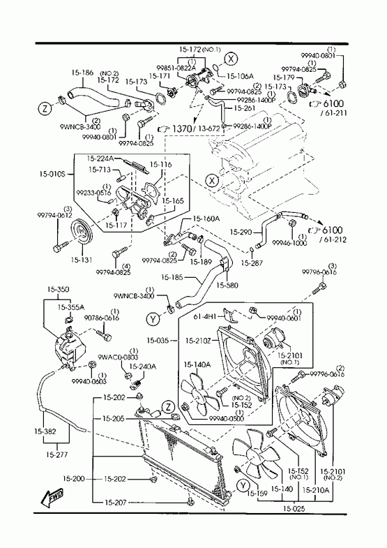 NB18**303928-€ 2,72 » 15116 GASKET,WATER PUMP Part Number Qty. Specifications Price B6BF15116 1 € 8,78 » 15117 BOSS,W.PUMP PULLEY Part Number Qty. Specifications Price E30115117 1 € 16,43 » 15131 PULLEY,WATER PUMP Part Number Qty. Specifications Price B3C715131 1 € 42,42 » 15140 FAN,COOLING Part Number Qty. Specifications Price BP4W15140 1 € 52,18 » 15140A FAN,COOLING Part Number Qty. Specifications Price B6MC15140 1 W/AIR CON. € 61,13 » 15160A INLET,WATER PUMP Part Number Qty. Specifications Price BP6D15160 1 € 105,43 » 15165 GASKET,W.PUMP INLET Part Number Qty. Specifications Price B62115165 1 NON ASBESTOS € 2,90 » 15171 THERMOSTAT Part Number Qty. Specifications Price BP6F15171A 1 € 31,15 » 15172 COVER,THERMOSTAT Part Number Qty. Specifications Price BP6D15170A 1 ILLUST. NO.1 € 62,62 BPE815172 1 ILLUST. NO.2 € 18,90 » 15173 GASKET,THERMOSTAT COVER Part Number Qty. Specifications Price B62115173 2 NON ASBESTOS € 5,10 » 15179 OUTLET,WATER PUMP Part Number Qty. Specifications Price BP4W15179 1 € 22,13 » 15185 HOSE,WATER Part Number Qty. Specifications Price BP4W15185B 1 € 17,73 » 15186 HOSE,WATER Part Number Qty. Specifications Price BP4W15186B 1 € 20,41 » 15189 CLAMP,HOSE Part Number Qty. Specifications Price B36615182 1 € 3,79 » 15200 RADIATOR Part Number Qty. Specifications Price BP4W15200A 1 MANUAL TRANSMISSION € 331,81 BP6L15200 1 AUTOMATIC TRANSMISSION € 222,92 » 15202 RUBBER,MOUNT Part Number Qty. Specifications Price JE4815202 4 AN (LFG1-15-202) € 4,36 » 15205 CAP,RADIATOR Part Number Qty. Specifications Price KL0115205 1 € 14,23 » 15207 COCK,DRAIN Part Number Qty. Specifications Price NF0115203 1 CALSONIC € 8,27 » 152101 FAN DRIVE Part Number Qty. Specifications Price B6MC15150 1 ILLUST. NO.1