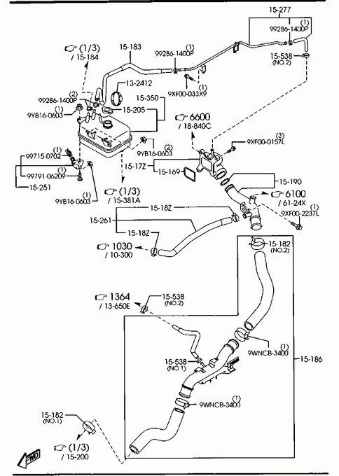 NC18**110369-€ 11,67 » 15186 HOSE,WATER Part Number Qty. Specifications Price LFG11518XA 1 € 97,72 » 1518Z CLAMP,WATER HOSE Part Number Qty. Specifications Price LF0715182 2 € 2,72 » 15190 PIPE,WATER Part Number Qty. Specifications Price LFE215190 1 » 15205 CAP,RADIATOR Part Number Qty. Specifications Price AJA415205 1 € 18,63 » 15251 BRACKET,SUB TANK Part Number Qty. Specifications Price LFG115370 1 » 15261 HOSE,BYPASS Part Number Qty. Specifications Price LFE215260A 1 » 15277 HOSE,WATER SUB TANK Part Number Qty. Specifications Price LFG115380 1 » 15350 TANK,SUB-RADIATOR Part Number Qty. Specifications Price LFG115350B 1 € 64,97 » 15538 CLAMP,HOSE Part Number Qty. Specifications Price B6BF15538 1 ILLUST. NO.1 € 2,10 LFG115538 2 ILLUST. NO.2 LFG215538 1 ILLUST. NO.3 » 90780 BOLT Part Number Qty. Specifications Price 9979106209 1 € 0,63 » 90780 BOLT Part Number Qty. Specifications Price 9XF002237L 1 € 1,85 » 90901 NUT Part Number Qty. Specifications Price 9YB160603 1 € 3,02 » 99281 CLAMP,HOSE Part Number Qty. Specifications Price 992861400P 1 € 2,44 » 99281 CLAMP,HOSE Part Number Qty. Specifications Price 9WNCB3400 1 € 4,02 » 99601 BOLT Part Number Qty. Specifications Price 9XF000157L 1 € 5,30 » 99601 BOLT Part Number Qty. Specifications Price 9XF00033X9 1 € 0,74 » 99715 HOLDER Part Number Qty. Specifications Price 997150702 1 € 1,89