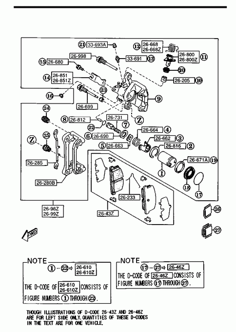 FD13B2300053-€ 143,25 » 2646Z SEAL & BOOT SET,CAL.-RR Part Number Qty. Specifications Price FDY12646Z 1 € 98,95 » 26610 BODY & PISTON(R),CALIPER Part Number Qty. Specifications Price FD012661X 1 € 281,07 » 26610Z BODY & PISTON(L),CALIPER Part Number Qty. Specifications Price FD012671X 1 € 281,07 » 26662 COVER,CASE Part Number Qty. Specifications Price B46226662 2 € 10,16 » 26663 WASHER,SPRING Part Number Qty. Specifications Price B46226663 2 € 2,24 » 26664 SPRING Part Number Qty. Specifications Price B46226664 2 € 2,56 » 26668 SPRING(R),LEVER Part Number Qty. Specifications Price FD0126668 1 € 11,09 » 26668Z SPRING(L),LEVER Part Number Qty. Specifications Price FD0126669 1 € 11,09 » 26671A SEAL,PISTON Part Number Qty. Specifications Price 124326671 2 € 27,91 » 26680 BOLT Part Number Qty. Specifications Price FA1826680 2 € 3,20 » 26690 STOPPER,CALIPER-RR Part Number Qty. Specifications Price B46226694 2 € 9,29 » 26699 PIN,LOCK Part Number Qty. Specifications Price FD0126699 2 € 9,45 » 26731 SPINDLE,ADJUSTER Part Number Qty. Specifications Price FD0126731 2 € 21,57 » 26800 LEVER(R),OPERATING Part Number Qty. Specifications Price FD0126800 1 € 72,01 » 26800Z LEVER(L),OPERATING Part Number Qty. Specifications Price FD0126810 1 € 72,01 » 26812 LINK,CONNECTING Part Number Qty. Specifications Price H00126812 2 € 3,17 » 26816 RING,SNAP-RR CALIPER Part Number Qty. Specifications Price GJ2526816 2 € 2,73 » 26851 BRACKET(R),CABLE Part Number Qty. Specifications Price FD0126851 1 » 26851Z BRACKET(L),CABLE Part Number Qty. Specifications Price FD0126861 1 » 2698Z CALIPER(R),PADLESS-RR Part Number Qty. Specifications Price FD012698Z 1 » 26998 PIN,GUIDE Part Number Qty. Specifications Price FD0126998 2 € 16,13 » 2699Z CALIPER(L),PADLESS-RR Part Number Qty. Specifications Price FD012699Z 1 » 33691 SCREW,BLEEDER Part Number Qty. Specifications Price 023333691 2 € 3,63 » 33693A CAP,BLEEDER SCREW Part Number Qty. Specifications Price 131633693 2 € 0,58