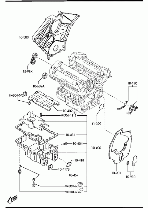 - Parts > Mazda TRIBUTE > 2003-12 > Gasoline-engine V6-cylinder Transmission > Oil Pan & Timing Cover(3000cc)