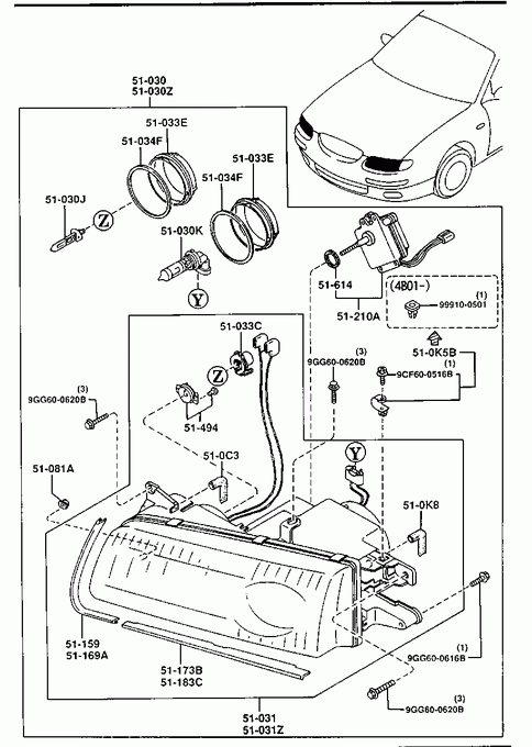 - Parts > Mazda XEDOS-9 > 1993-09 > Body Electronics > Head Lamps
