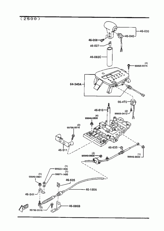 TA*2**200106-TB8946030 1 LEATHER » 46040 SWITCH,OVER DRIVE CONTROL Part Number Qty. Specifications Price TB8746040 1 » 46058 SCREW,CHANGE LEVER KNOB Part Number Qty. Specifications Price FB0246058C 2 € 1,33 » 46082C COVER,SELECT LEVER Part Number Qty. Specifications Price T00146088 1 € 15,97 » 46086B BRACKET,CABLE Part Number Qty. Specifications Price T00146086 1 2500 € 14,71 T00646086 1 2300 € 13,98 » 46150A CABLE,CONTROL Part Number Qty. Specifications Price T00146500B 1 2500 € 157,64 T00646500C 1 2300 » 46511 BRACKET Part Number Qty. Specifications Price T00146111 1 € 10,05 » 46541 LEVER Part Number Qty. Specifications Price T00146311 1 2500 € 9,14 T00746311C 1 2300 € 10,63 » 46635 CLIP,CONTROL CABLE Part Number Qty. Specifications Price GN9946635 2 € 2,18 » 64340A INDICATOR Part Number Qty. Specifications Price TA0664350A 1 W/O TRACTION CONTROL TA1564350A 1 W/TRACTION CONTROL » 664T0 SWITCH,TRACTION OFF Part Number Qty. Specifications Price T001664T0 1 W/TRACTION CONTROL € 55,28 » 90901 NUT Part Number Qty. Specifications Price 999221400 1 € 2,59 » 90901 NUT Part Number Qty. Specifications Price 999460600 1 € 2,33 » 90901 NUT Part Number Qty. Specifications Price 999460800 1 € 2,54 » 90906 NUT,FLANGE Part Number Qty. Specifications Price 999400800 1 € 1,54 » 90906 NUT,FLANGE Part Number Qty. Specifications Price 999400801 1 € 1,64 » 99175 SCREW,TAPPING Part Number Qty. Specifications Price 998650516 1 € 0,51 » 99175 SCREW,TAPPING Part Number Qty. Specifications Price 998680412 1 € 0,48 » 99756 BOLT,FLANGE Part Number Qty. Specifications Price 997960616 1 € 0,81 » 99971 WASHER,SPRING Part Number Qty. Specifications Price 999711400 1 € 0,40