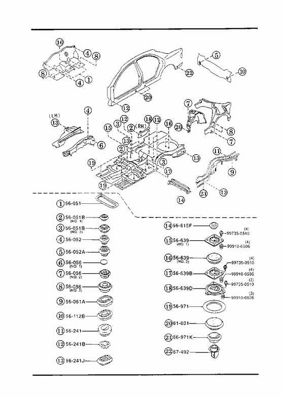 - Parts > Mazda XEDOS-9 > 1996-06 > Body Exterior Trim > Floor Attachments(hole Covers)